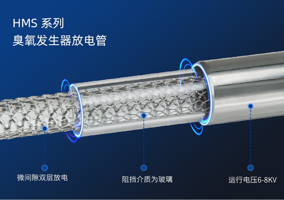 :采用DBD介质阻挡放电,利用高速电子轰击氧分子,使其分解成氧原子,随后氧原子通过三体碰撞反应形成臭氧。