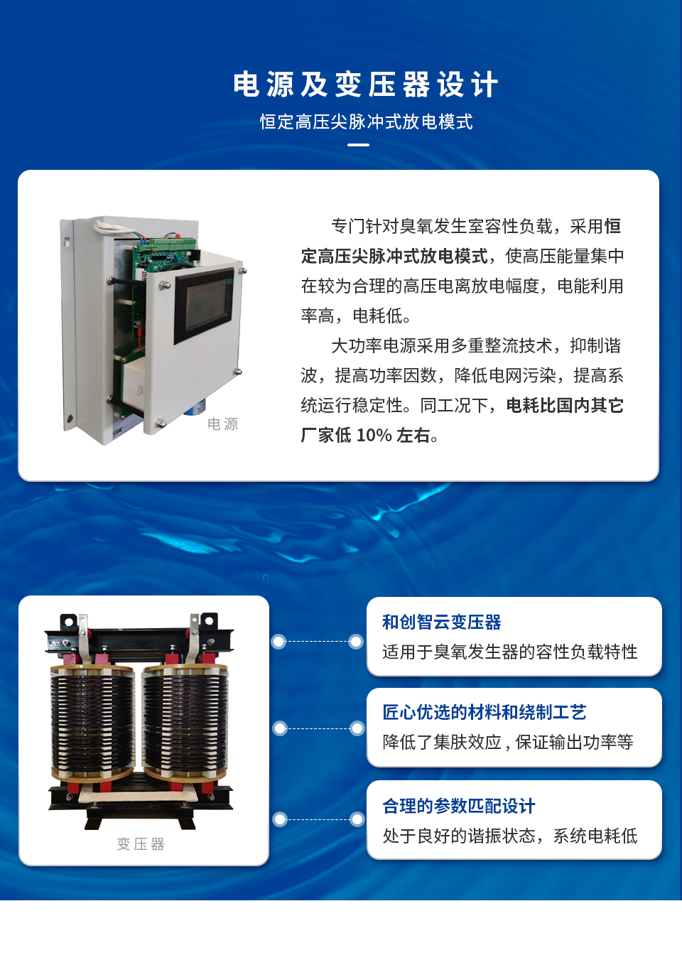:采用DBD介质阻挡放电,利用高速电子轰击氧分子,使其分解成氧原子,随后氧原子通过三体碰撞反应形成臭氧。