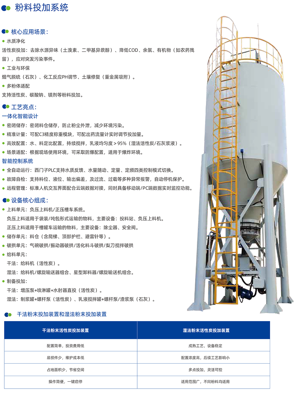 :密闭储存:密闭料仓储存,防止粉尘外泄,减少环境污染;精准计量:可配C3精度称重模块,可配出药流量计实时调节投加量;高效配置:水、料定比配置,持续搅拌,乳液均匀度>95%(湿法活性炭/石灰浆液);场景适配:根据现场使用环境,可采取防爆配置,适用于爆炸环境。适用于:粉末活性炭、石灰、碳酸钠、镁剂等粉料投加。